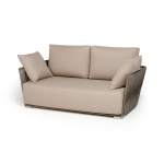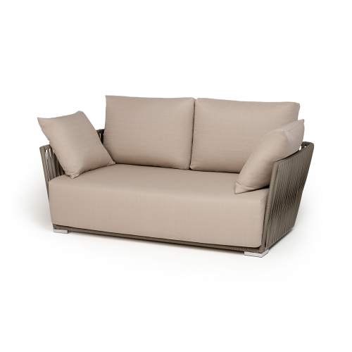 "Форли" диван 2-местный плетеный из роупа, каркас алюминий светло-серый (RAL7035) муар, роуп серо-коричневый 23мм, ткань Mossle бежевая