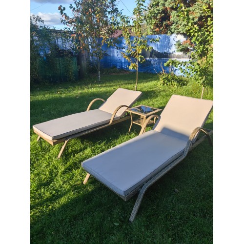 Отдыхайте с комфортом на шезлонгах AGATA из искусственного ротанга бежевого цвета! Эти элегантные ше..