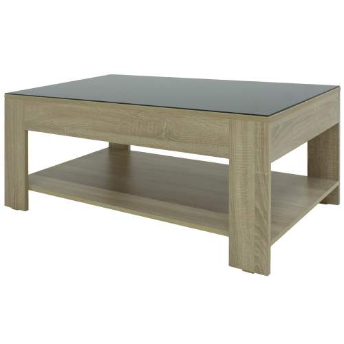 Стол журнальный BeautyStyle 26 сонома/стекло черное в гостиную