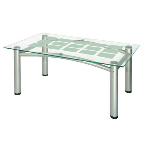 Компактный и современный журнальный стол с ажурным рисунком на стекле. Модель имеет изящные ножки, к..