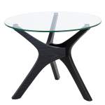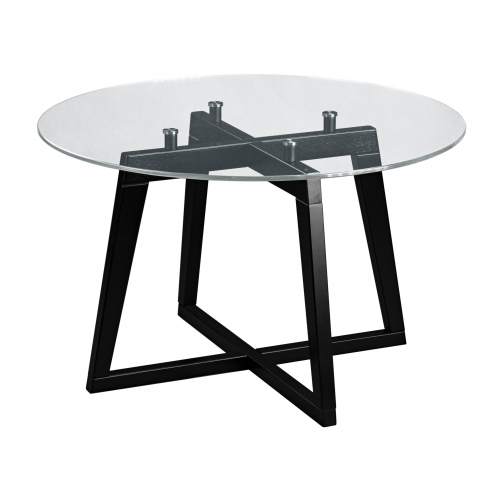 Современный стеклянный столик в офис с металлическим основанием