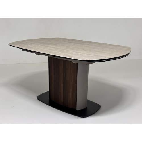 Стол DAGFINN 160 IVORY TRAVERTINE с матовой керамической столешницейОписание модели:двухторцевая сис..