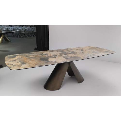 Стол BRONTE 200 раскладной KL-188 Контрастный мрамор матовый, итальянская керамика/ Шампань, ®DISAUR