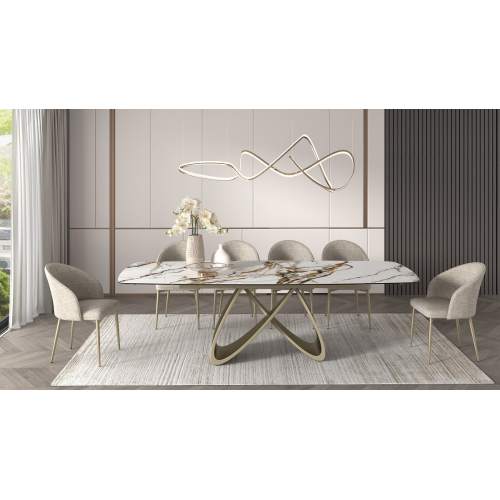 Стол RIVOLI 140 монолитная керамика в цвете бело-коричневый мрамор Описание модели: двухсторонняя ..