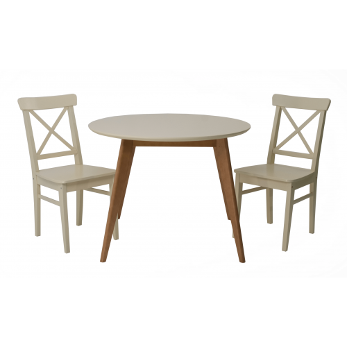 Комплект из деревянного стола Сканди на каркасе из натурального дерева и 2 стула Ингольф отлично под..