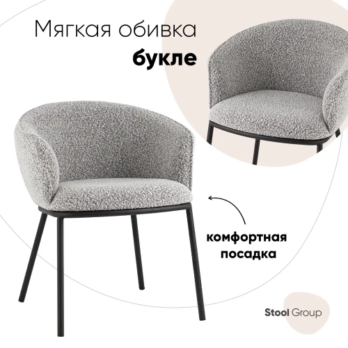 Стул с подлокотниками Кози ткань букле молочный ножки металл черные..