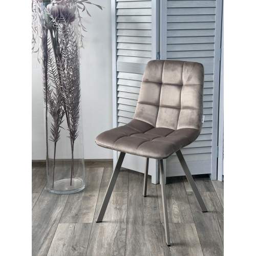 Стул CHILLI SQUARE кварцевыйСиденье обито велюром.Ножки стула - квадратные - металл цвета латте, пор..