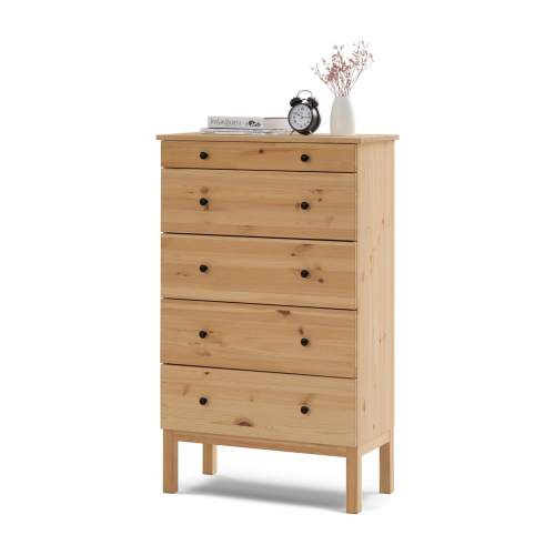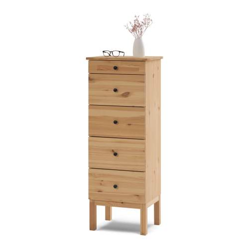 Узкий и высокий комод легко разместится в любой даже небольшой комнате и прихожей. Комод выполнен из..