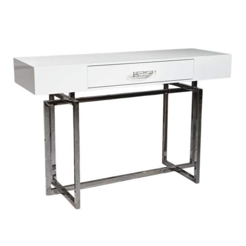Стол-консоль Альма с двумя выдвижными ящиками Материал: МДФ, нержавеющая сталь Цвет: белый глянцевый..
