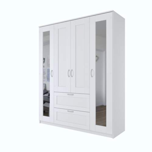 Шкаф СИРИУС комбинированный для одежды четырехдверный, с двумя выдвижными ящиками и двумя зеркалами,..