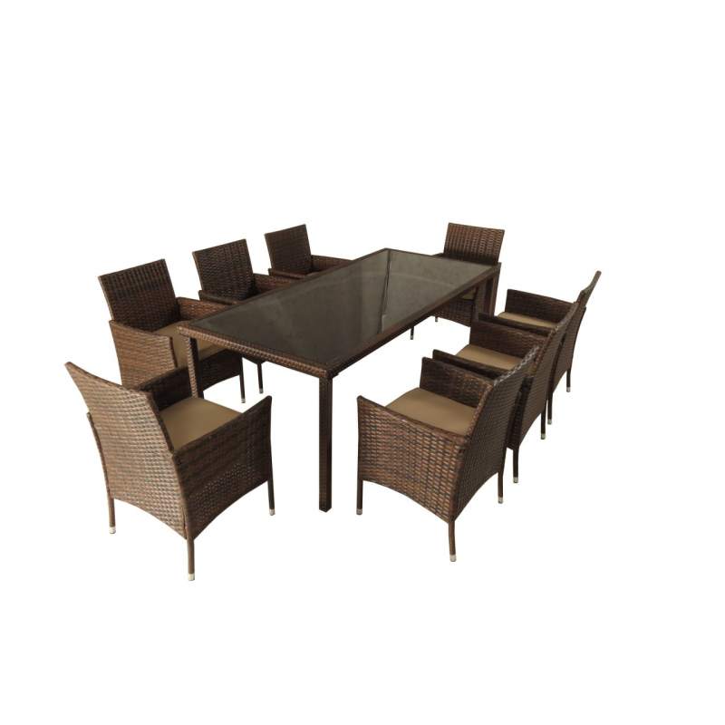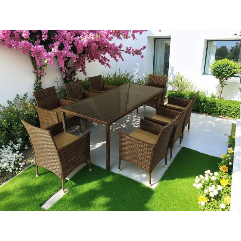 Обеденная группа из искусственного ротанга ЕГИПЕТ “EGYPT” состоит из 9 предметов – стол из искусственного ротанга + восемь кресел из искусственного ротанга, общий вес комплекта составляет 114,4 кг: