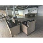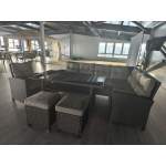 Угловая модульная лаунж зона с обеденным столом и тремя стульями. Искусственный ротанг, плетение кру..