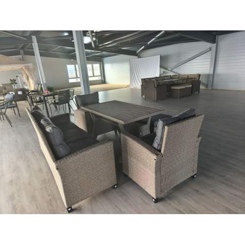Обеденная группа из искусственного ротанга: 4 раскладывающихся кресла и обеденный стол со стеклянной..