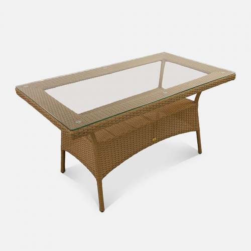 Стол Kipr 1400х820 СТ Искусственный ротанг RAL 1014 CT.Прозрачное Длина: 1420 мм