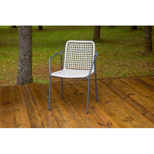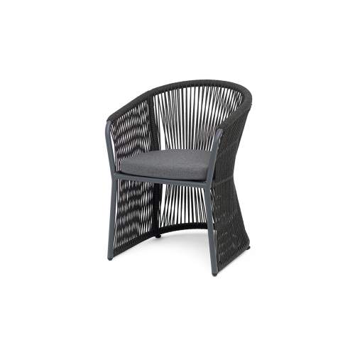 Стул «Тунис» — плетеная модель из роупа (полиэфирной веревки) с алюминиевым каркасом темно‑серого цв..