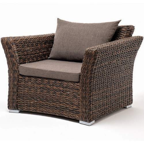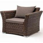 Кресло из искусственного ротанга «Мэдисон» арт. М00130 коричневого цвета с мягкими подушками на сиде..