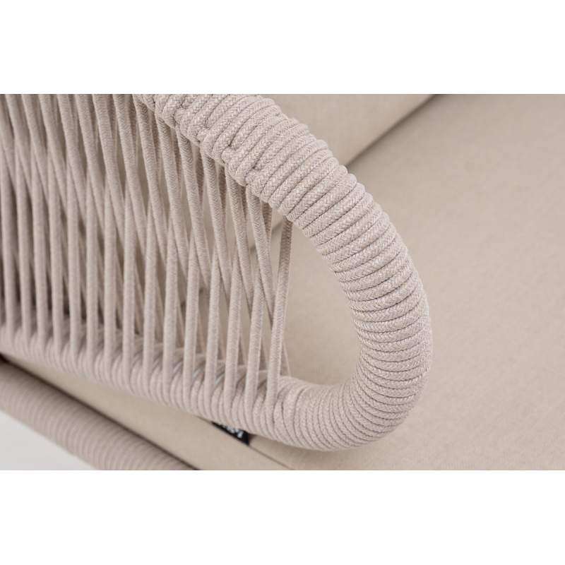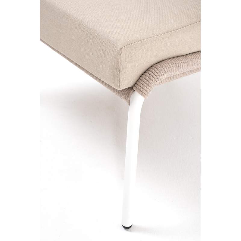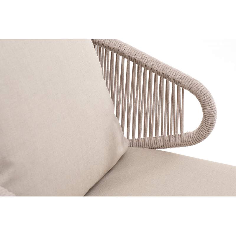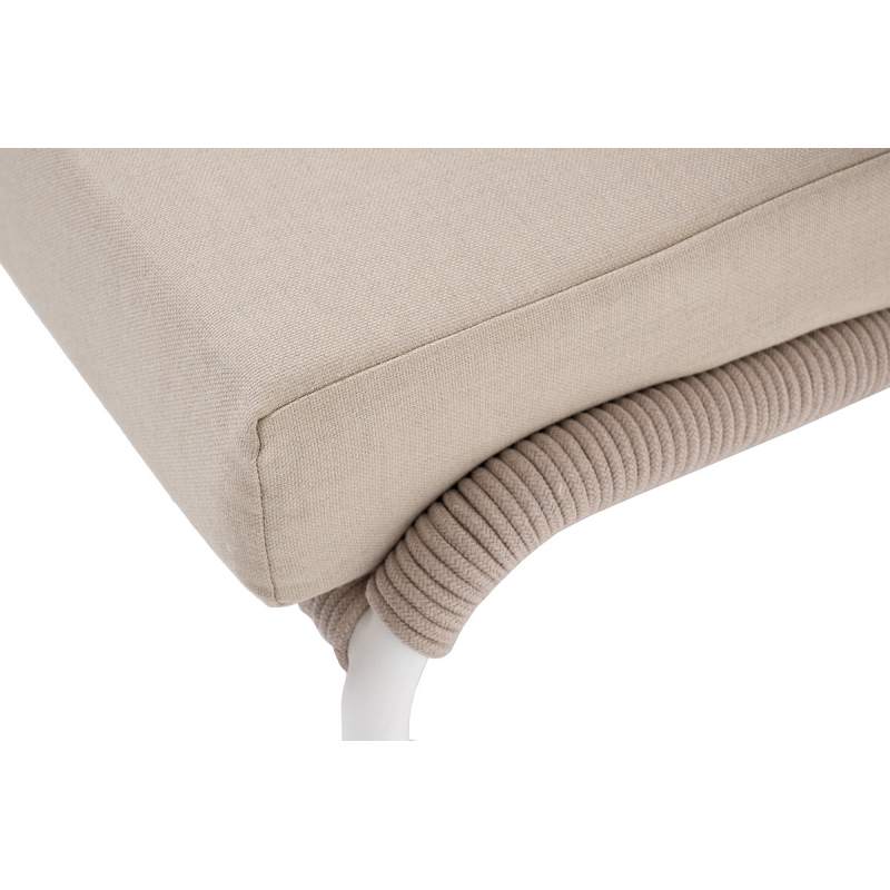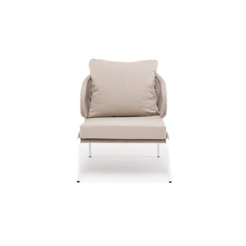 "Милан" кресло плетеное из роупа, каркас алюминий белый муар, роуп бежевый круглый, ткань бежевая 15052