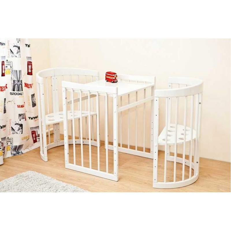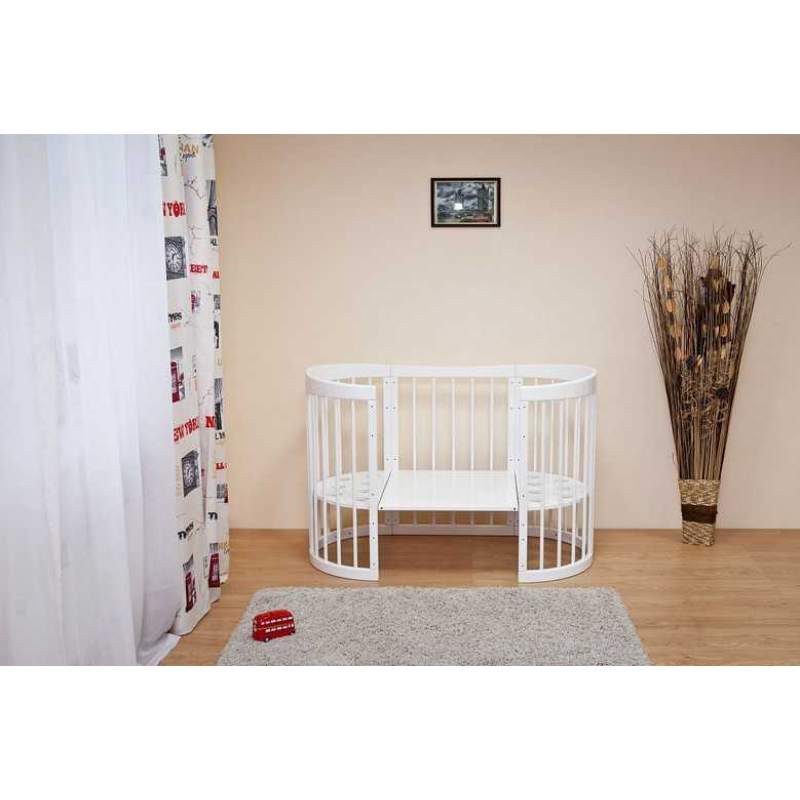 Базовые характеристики: Производитель: Можга Красная Звезда Страна производства: Россия Модель: С 422 Пол: универсальный Возраст: до 6 месяцев Материал: массив березы Колличество уровней ложа: 3 Тип: круглая 7 в 1 Цвет: белый Комплектация: Опускающаяся стенка: нет Съемная стенка: нет Колеса: есть Матрас в комплекте: нет Ящик: нет Защитная накладка: нет Размеры: Размер под матрас, см: 125 на 65 и 65 на 65 Длина, см: 130 Ширина, см: 67 Высота, см: 104 Вес, кг: 35