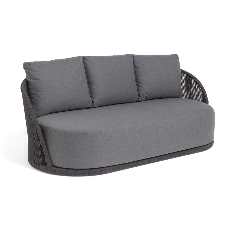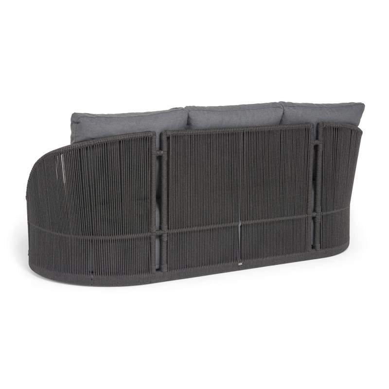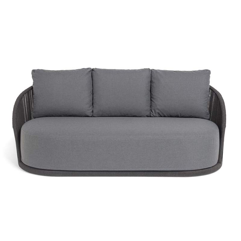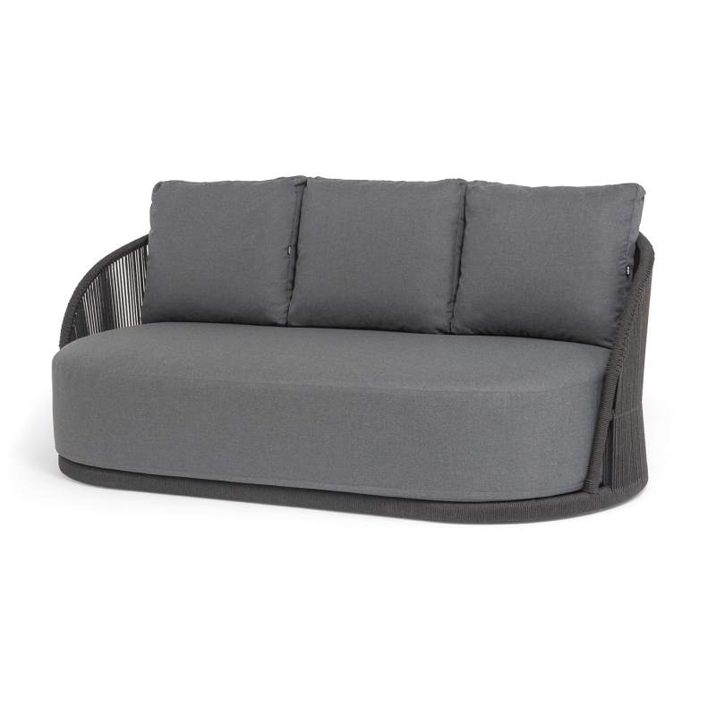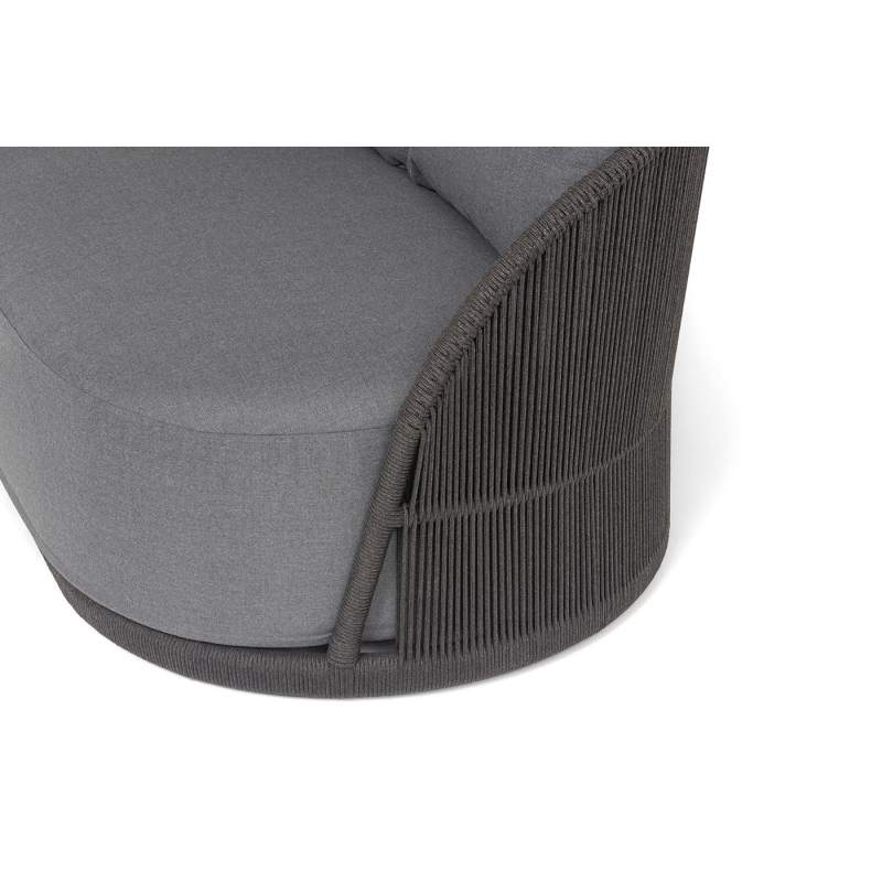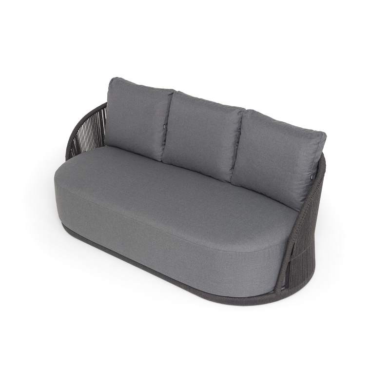 "Монтелла" диван 3-местный плетеный из роупа, каркас алюминий темно-серый (RAL7024) муар, роуп темно-серый круглый, ткань темно-серая 027