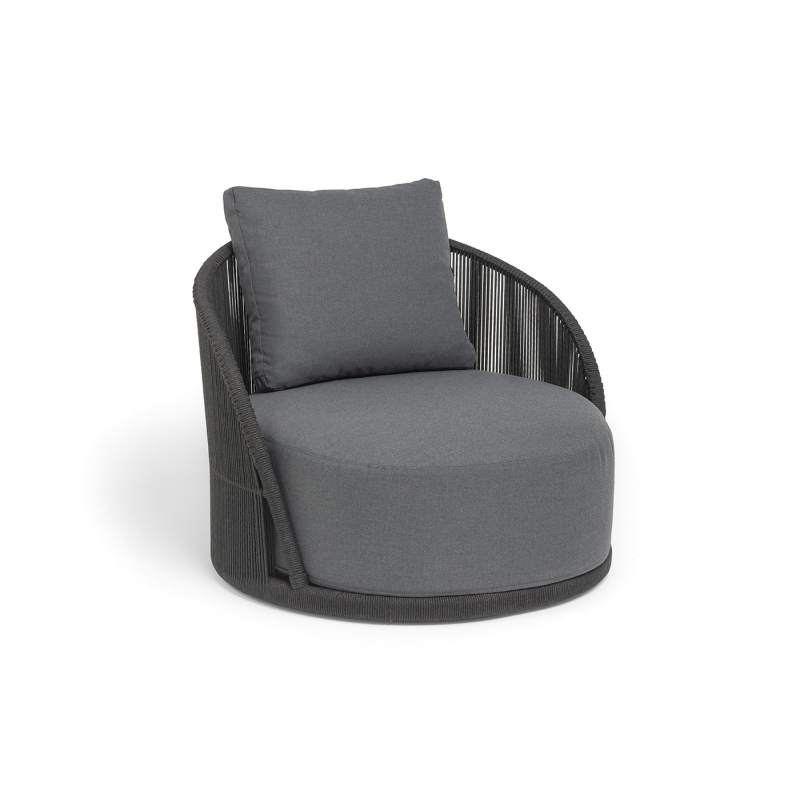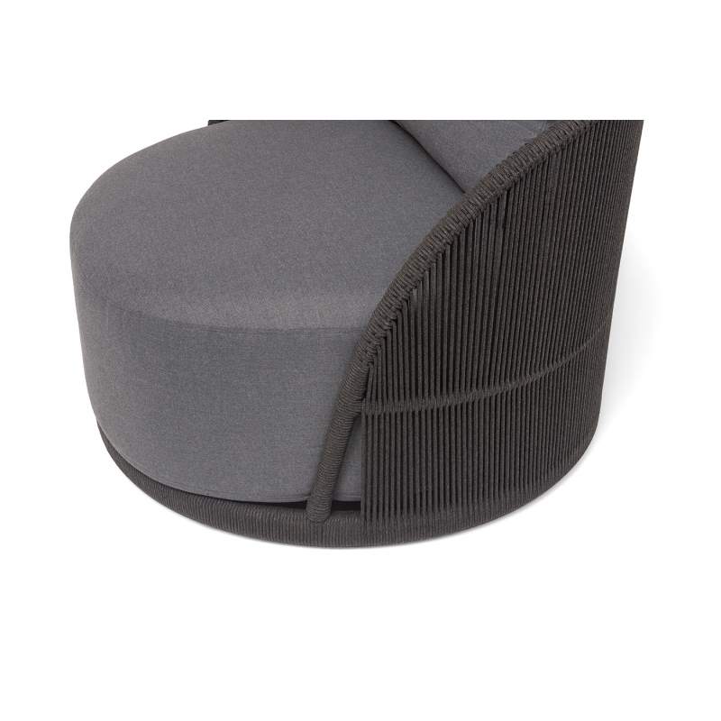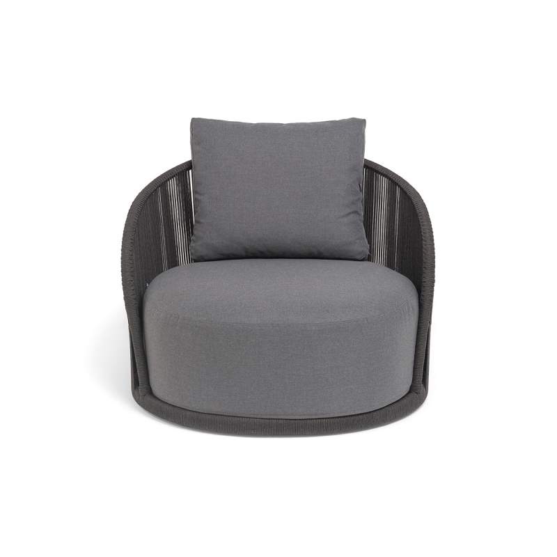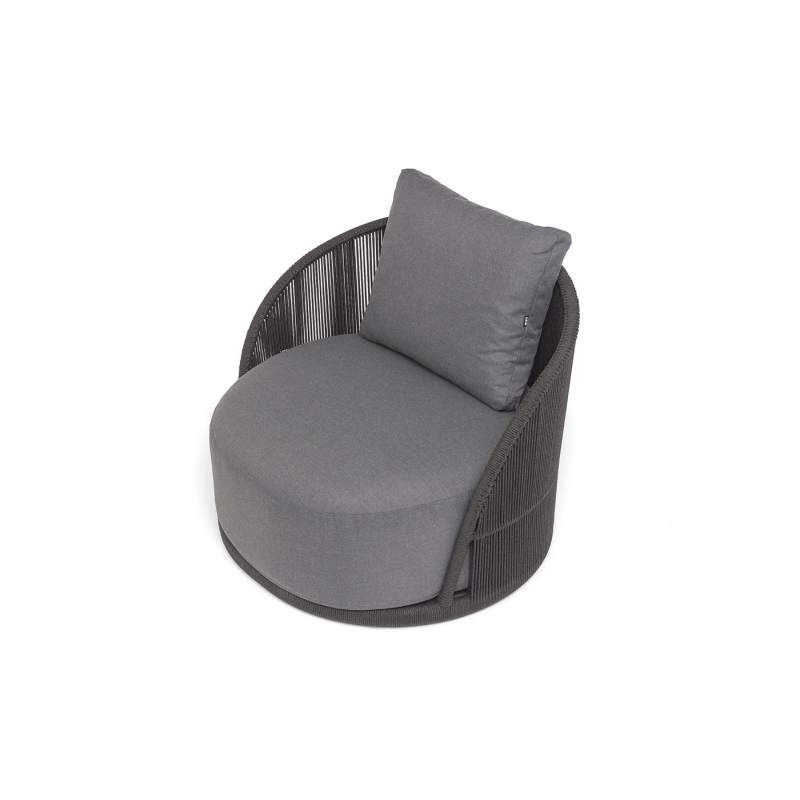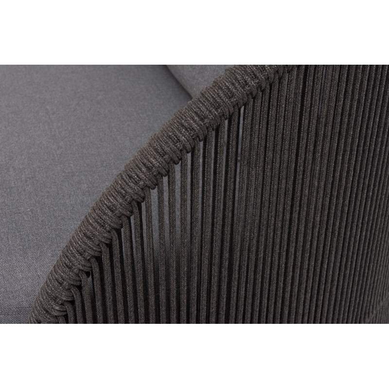 "Монтелла" кресло плетеное из роупа, каркас алюминий темно-серый (RAL7024) муар, роуп темно-серый круглый, ткань темно-серая 027