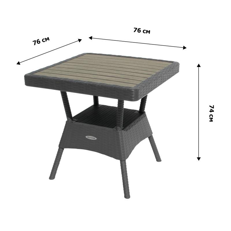 Габариты элементов (ШхГ/ДхВ) : стол: 76х76х74