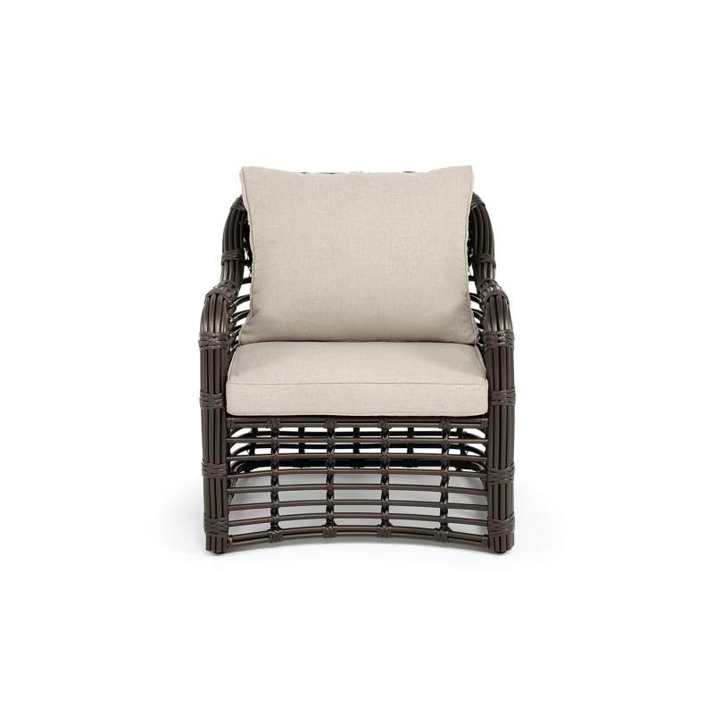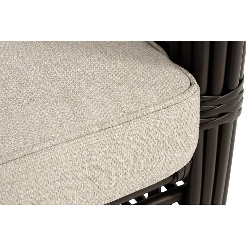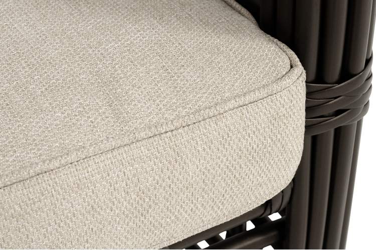 Кресло «Ницца» предназначено для комфортного времяпровождения в зоне отдыха с диванами и столиком из этой же серии. Каркас мебели сделан из прочного алюминия с высокими эксплуатационными качествами. Оплетен вручную с помощью круглого искусственного ротанга. Представлено в бронзовом оттенке. Садовое кресло укомплектовано удобными бежевыми подушками. Полиэстер используется при пошиве тканевых изделий, плотность которого - 300гр/м2. Материал имеет обязательную влагоотталкивающую пропитку для усиления его защитных свойств. Размер модели – 770×850×870 мм.