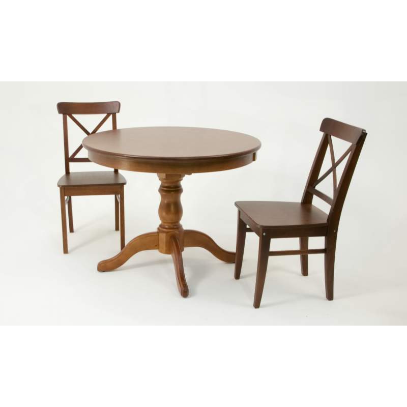 Комплект из деревянного стола Брамс на каркасе из натурального дерева и 2 стула Ингольф отлично подойдет к интерьеру, выдержанному в классическом стиле. Данный комплект станет центральным элементом в гостиной, столовой зоне, на кухне, позволив создать уютное обеденное место, где смогут собираться члены дружной семьи и их гости.У модели круглая форма столешницы. Такое решение исключит риск сколов и обеспечит безопасность, в том числе, детям.Комплект выполнен в красивом цвете - орех. Сочетание изысканного дизайна и высокого качества исполнения - главная особенность комплекта.Столешница выполнена из материалов с великолепными эксплуатационными свойствами - МДФ (Материал создается на основе натуральной древесины. Практичен, надежен, имеет однородную гладкую структуру), шпон.Мебель проста в уходе - для поддержания первозданного вида достаточно использовать простую чуть влажную салфетку по мере необходимости.Состав комплекта:- стол F001002W00- стулья R100742W00