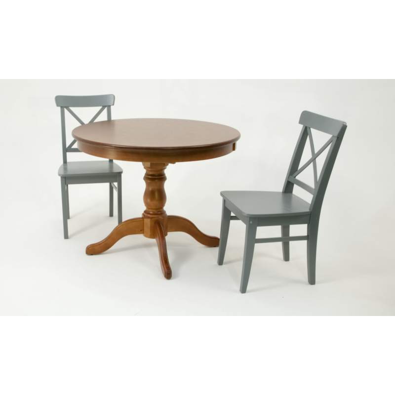 Комплект из деревянного стола Брамс на каркасе из натурального дерева и 2 стула Ингольф отлично подойдет к интерьеру, выдержанному в классическом стиле. Данный комплект станет центральным элементом в гостиной, столовой зоне, на кухне, позволив создать уютное обеденное место, где смогут собираться члены дружной семьи и их гости.У модели круглая форма столешницы. Такое решение исключит риск сколов и обеспечит безопасность, в том числе, детям.Комплект выполнен в красивой комбинации цветов - орех и серый. Сочетание изысканного дизайна и высокого качества исполнения - главная особенность комплекта.Столешница выполнена из материалов с великолепными эксплуатационными свойствами - МДФ (Материал создается на основе натуральной древесины. Практичен, надежен, имеет однородную гладкую структуру), шпон.Мебель проста в уходе - для поддержания первозданного вида достаточно использовать простую чуть влажную салфетку по мере необходимости.Состав комплекта:- стол F001002W00- стулья R100740G00
