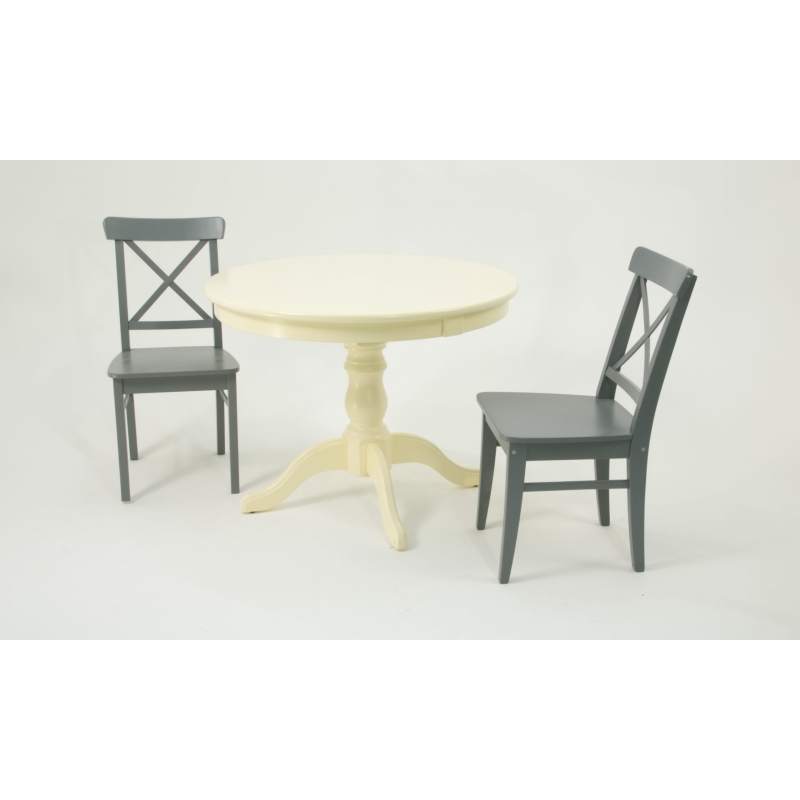 Комплект из деревянного стола Брамс на каркасе из натурального дерева и 2 стула Ингольф отлично подойдет к интерьеру, выдержанному в классическом стиле. Данный комплект станет центральным элементом в гостиной, столовой зоне, на кухне, позволив создать уютное обеденное место, где смогут собираться члены дружной семьи и их гости.У модели круглая форма столешницы. Такое решение исключит риск сколов и обеспечит безопасность, в том числе, детям.Комплект выполнен в красивой комбинации цветов - слоновая кость и серый. Сочетание изысканного дизайна и высокого качества исполнения - главная особенность комплекта.Столешница выполнена из материалов с великолепными эксплуатационными свойствами - МДФ (Материал создается на основе натуральной древесины. Практичен, надежен, имеет однородную гладкую структуру), шпон.Мебель проста в уходе - для поддержания первозданного вида достаточно использовать простую чуть влажную салфетку по мере необходимости.Состав комплекта:- стол F001001S00- стулья R100740G00