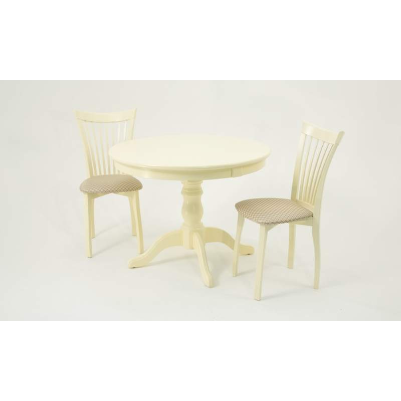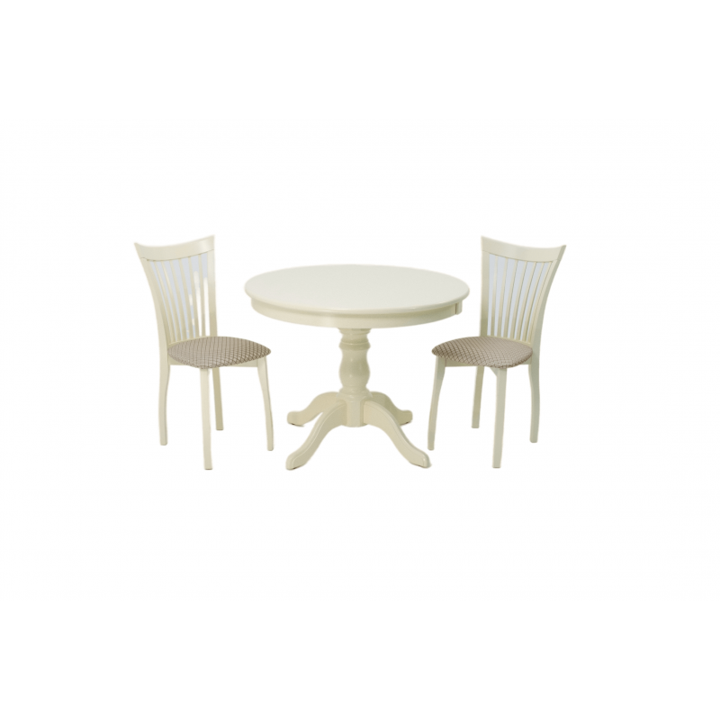 Комплект из деревянного стола Брамс на каркасе из натурального дерева и 2 стула Миранда отлично подойдет к интерьеру, выдержанному в классическом стиле. Данный комплект станет центральным элементом в гостиной, столовой зоне, на кухне, позволив создать уютное обеденное место, где смогут собираться члены дружной семьи и их гости.У модели круглая форма столешницы. Такое решение исключит риск сколов и обеспечит безопасность, в том числе, детям.Комплект выполнен в красивом цвете - слоновая кость. Сочетание изысканного дизайна и высокого качества исполнения - главная особенность комплекта.Столешница выполнена из материалов с великолепными эксплуатационными свойствами - МДФ (Материал создается на основе натуральной древесины. Практичен, надежен, имеет однородную гладкую структуру), шпон.Мебель проста в уходе - для поддержания первозданного вида достаточно использовать простую чуть влажную салфетку по мере необходимости.Состав комплекта:- стол F001001S00- стулья R001443S12
