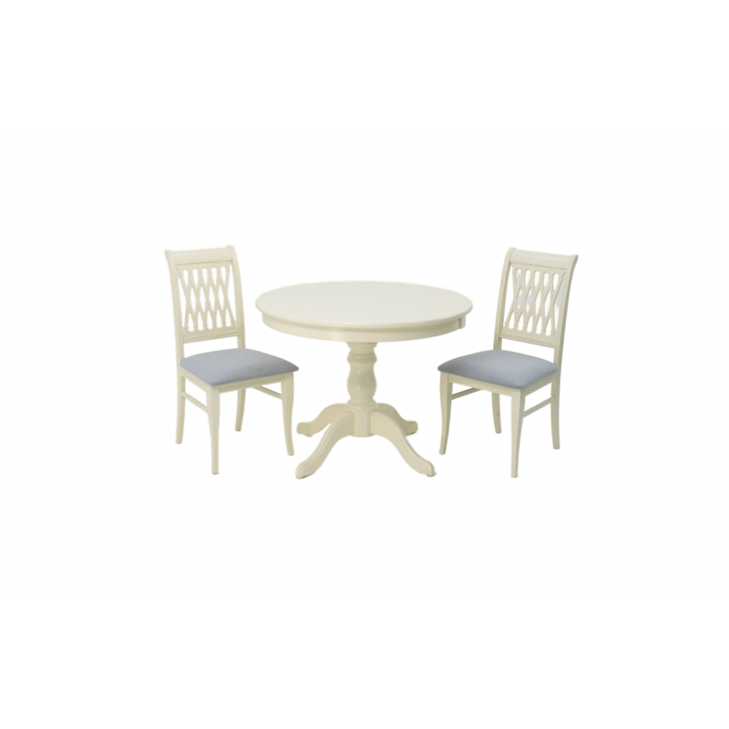 Комплект из деревянного стола Брамс на каркасе из натурального дерева и 2 стула Рич отлично подойдет к интерьеру, выдержанному в классическом стиле. Данный комплект станет центральным элементом в гостиной, столовой зоне, на кухне, позволив создать уютное обеденное место, где смогут собираться члены дружной семьи и их гости.У модели круглая форма столешницы. Такое решение исключит риск сколов и обеспечит безопасность, в том числе, детям.Комплект выполнен в красивом цвете - слоновая кость. Сочетание изысканного дизайна и высокого качества исполнения - главная особенность комплекта.Столешница выполнена из материалов с великолепными эксплуатационными свойствами - МДФ (Материал создается на основе натуральной древесины. Практичен, надежен, имеет однородную гладкую структуру), шпон.Мебель проста в уходе - для поддержания первозданного вида достаточно использовать простую чуть влажную салфетку по мере необходимости.Состав комплекта:- стол F001001S00- стулья R001400S01