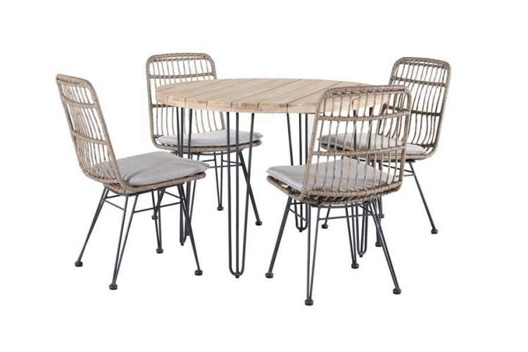 Дополнительно : столешница Массив акации, Основание Металл, цвет основания - Темный графит, стулья - искусственный ротанг, каркас алюминий, подушка в комплекте