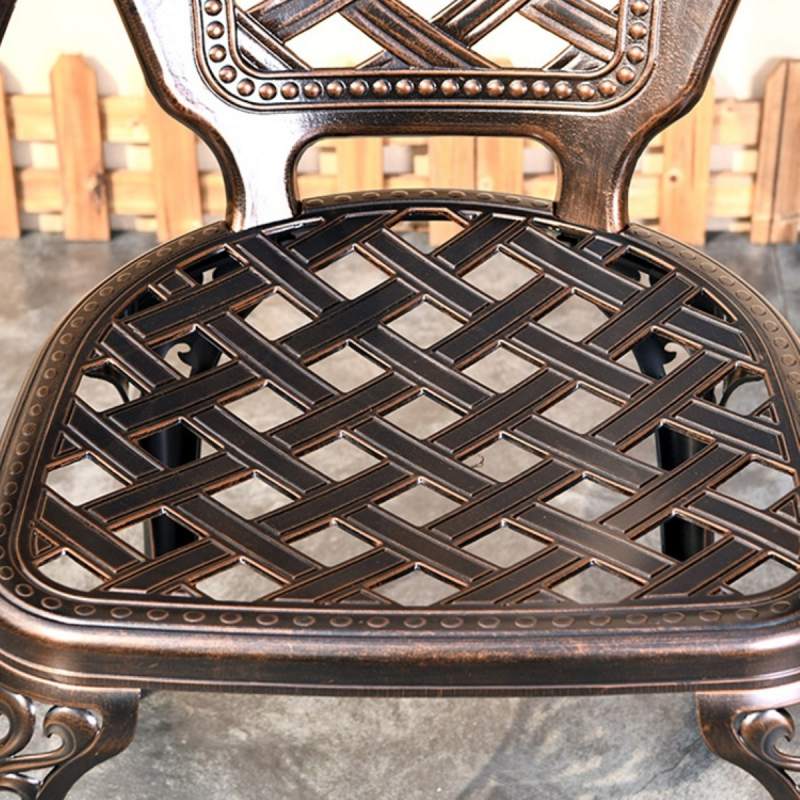 Обеденная группа из литого алюминия выглядит стильно и богато, хорошо гармонируя с современными стилями, от классики до современного дизайна.