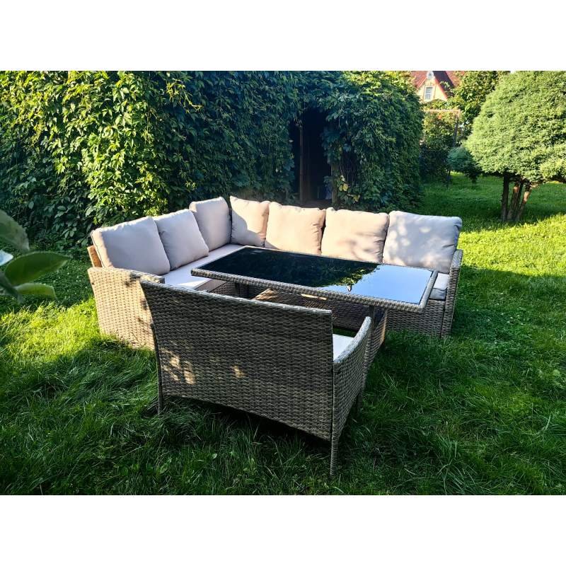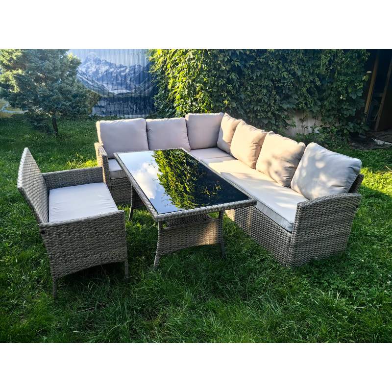 Обеденная группа плетеной мебели Албания + двухместный диван Анкор Greige