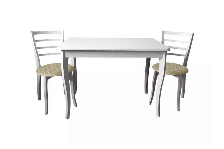 Обеденная группа СО-32/С-31 белый - стильный набор мебели, который создаст яркий и комфортный интерьер в столовой или гостиной комнате. Комплект выполнен в стиле модерн с использованием первоклассных материалов и фурнитуры. Набор состоит из обеденного раздвижного стола с гнутыми точеными ногами и двух стульев с мягкими сиденьями и решетчатыми спинками.