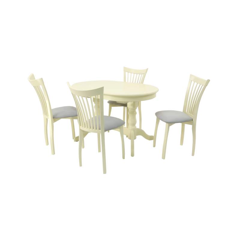 Обеденная группа стол Бизе со стульями Миранда,слоновая кость, серый