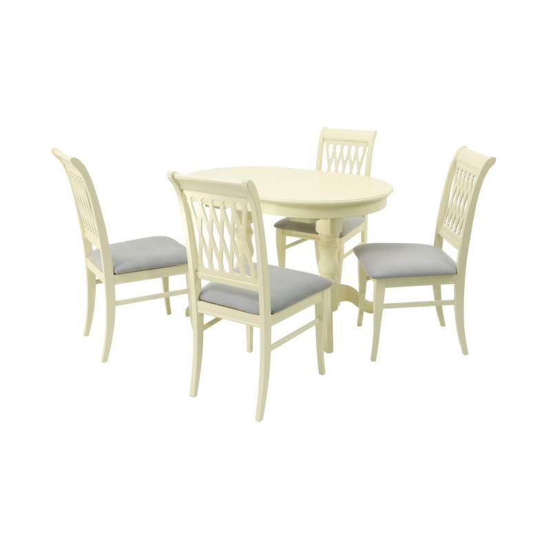 Обеденная группа стол Бизе со стульями Рич,слоновая кость, серый