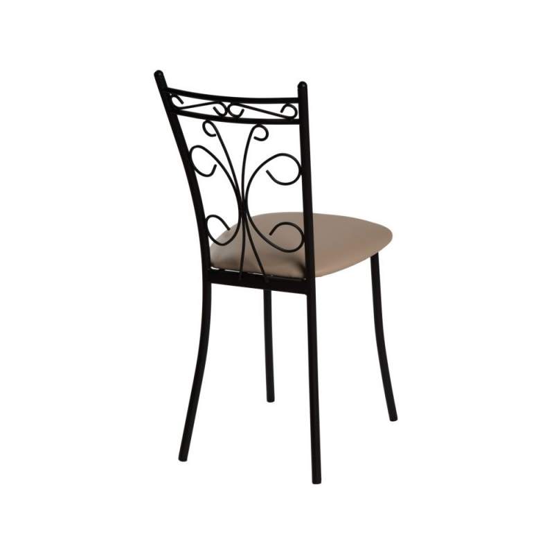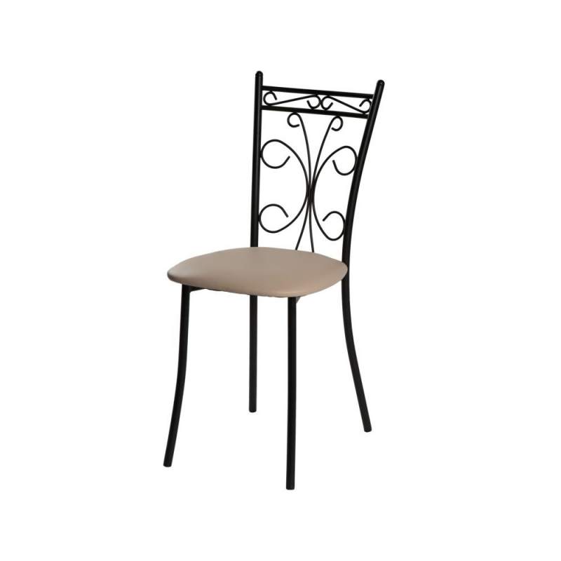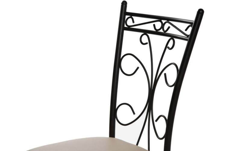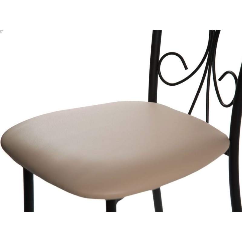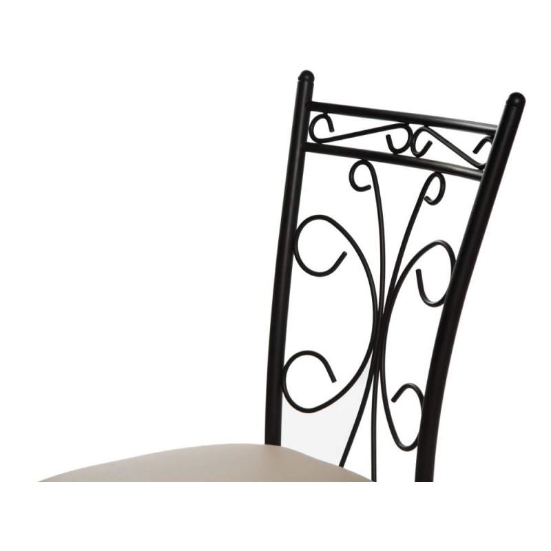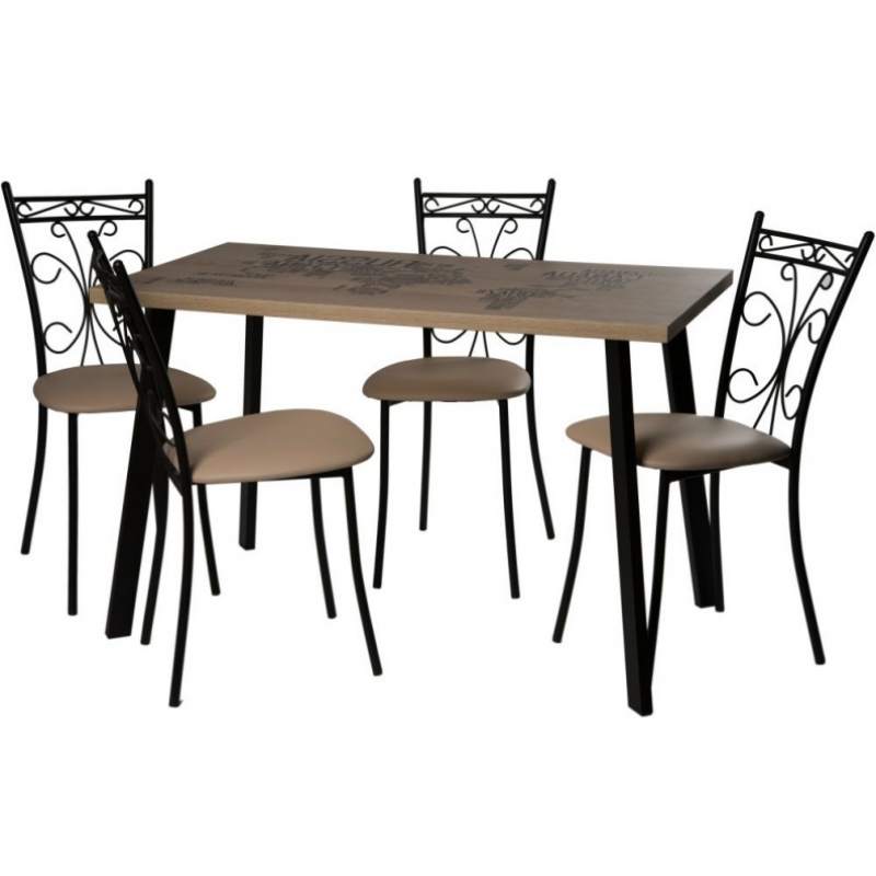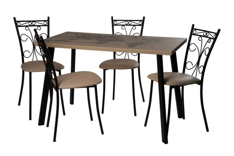 Обеденная группа, состоящая из нераскладного стола «Бремор» фотопечать Карта мира, ножки черный металл и 4-х стульев «Неаполь», исполненных с сиденьем в обивке Линкольн бежевый, с черным каркасом — изготовленной С. Петербургской мебельной фабрикой «Древпром».