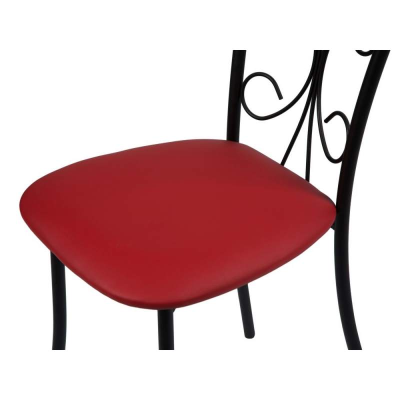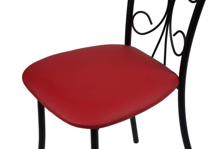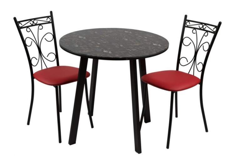 Обеденная группа, состоящая из нераскладного стола «Филд» и 2-х стульев «Неаполь», исполненных с обивкой Экотек красный, с черным каркасом — изготовленной Санкт-Петербургской мебельной фабрикой «Древпром».