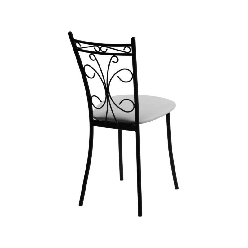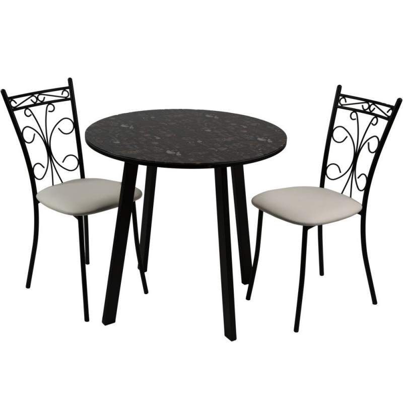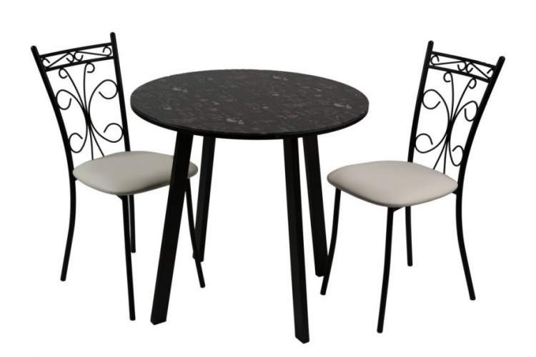 Обеденная группа, состоящая из нераскладного стола «Филд» и 2-х стульев «Неаполь», исполненных с обивкой Линкольн белый, с черным каркасом — изготовленной Санкт-Петербургской мебельной фабрикой «Древпром».
