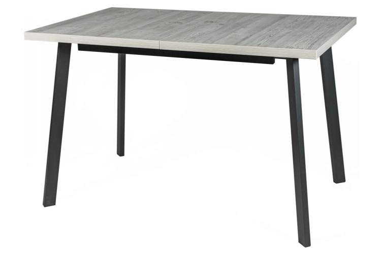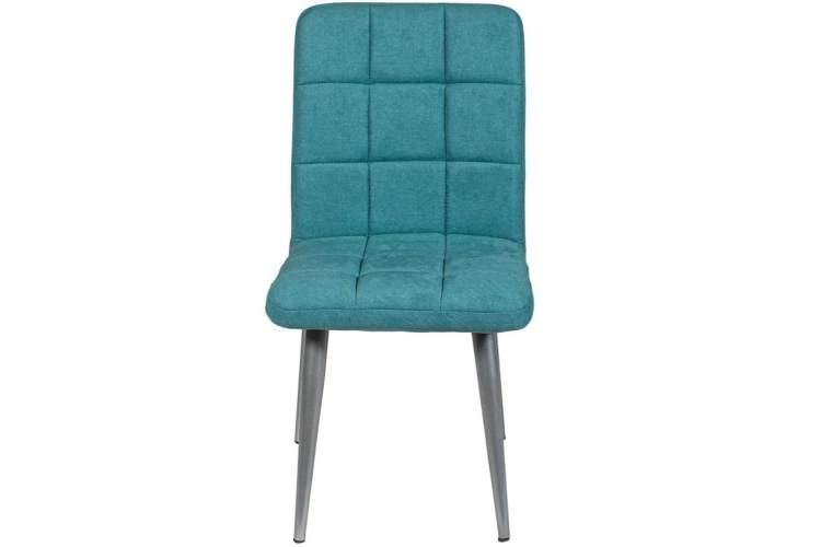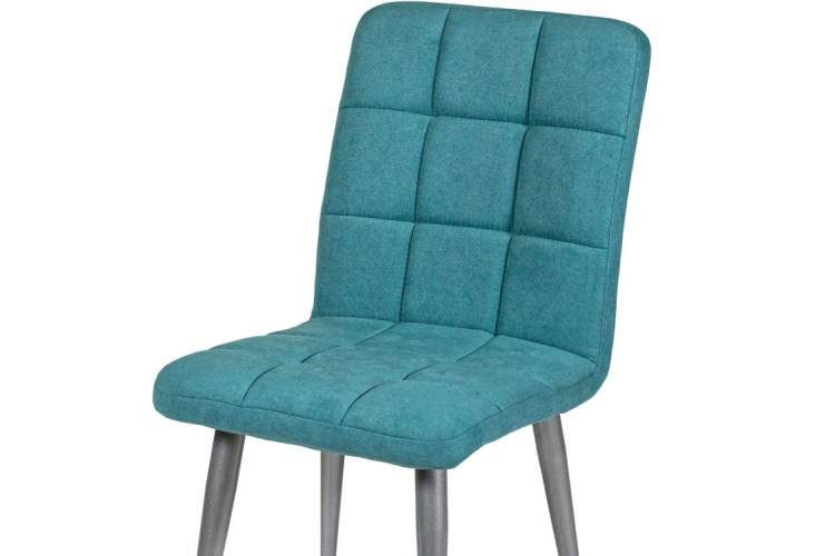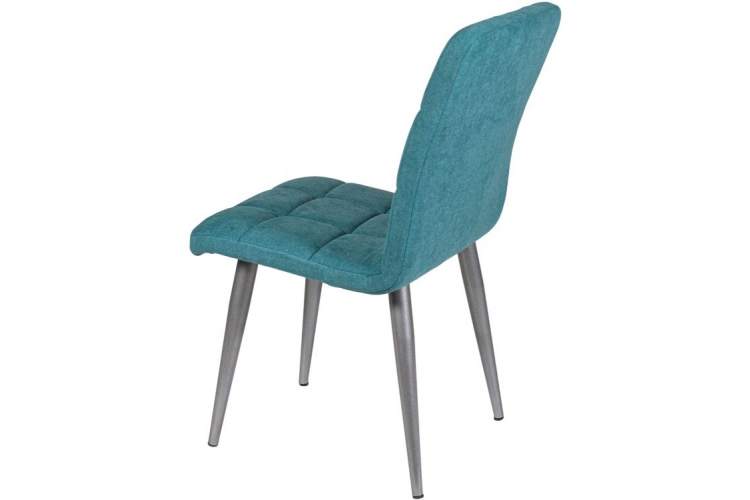 Обеденная группа, состоящая из раскладного стола «Каспер» ЛДСП «Наоми», ножки черный металл и 4-х стульев «Даллас», исполненных с сиденьем в обивке Канди Аквамарин, с каркасом металлик — изготовленной С. Петербургской мебельной фабрикой «Древпром».