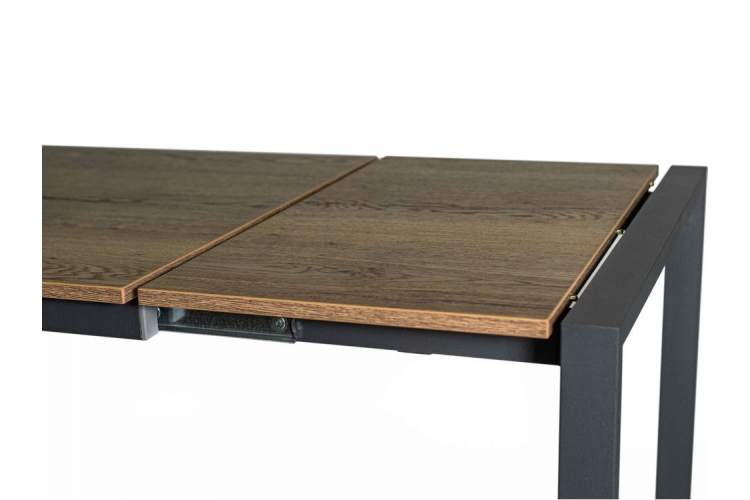 Обеденная группа, состоящая из раскладного стола «Кастел» ЛДСП «Галифакс», ножки черный металл и 4-х стульев «Шато», исполненных с сиденьем в обивке микровелюр Канди Сани, с каркасом Графит — изготовленной С. Петербургской мебельной фабрикой «Древпром».