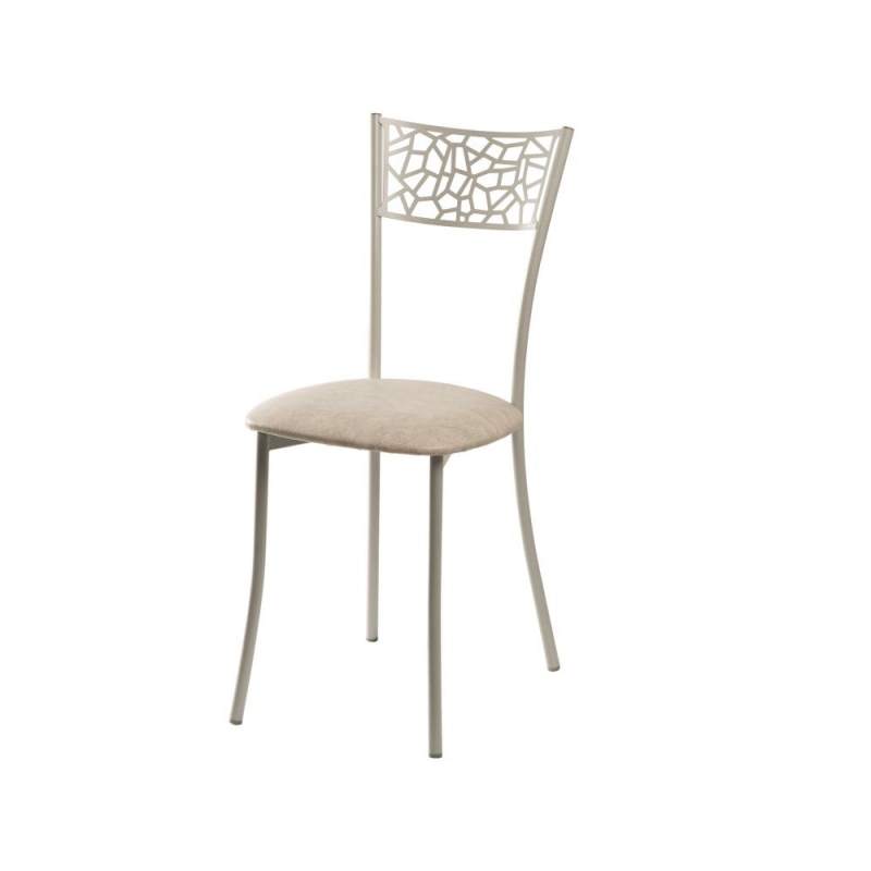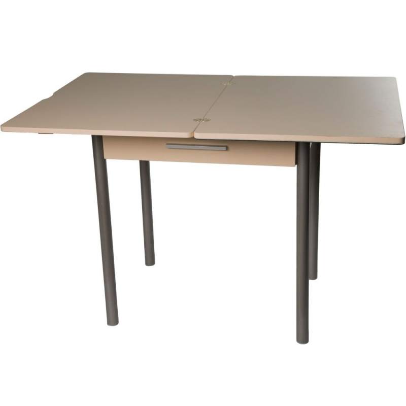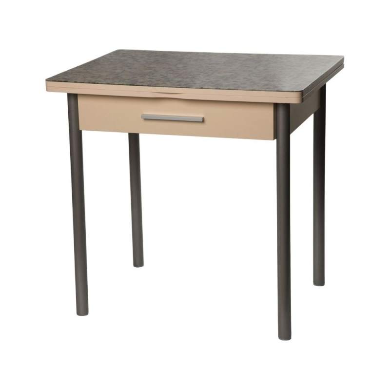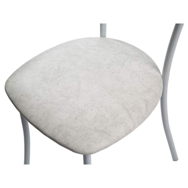 Обеденная группа, состоящая из нераскладного стола «Милагро» ЛДСП Навара и 4-х стульев «Кемпер», исполненных с обивкой Серый мрамор, с белым каркасом — изготовленной Санкт-Петербургской мебельной фабрикой «Древпром».