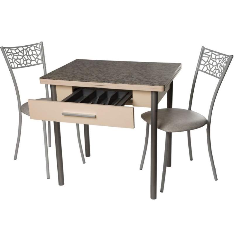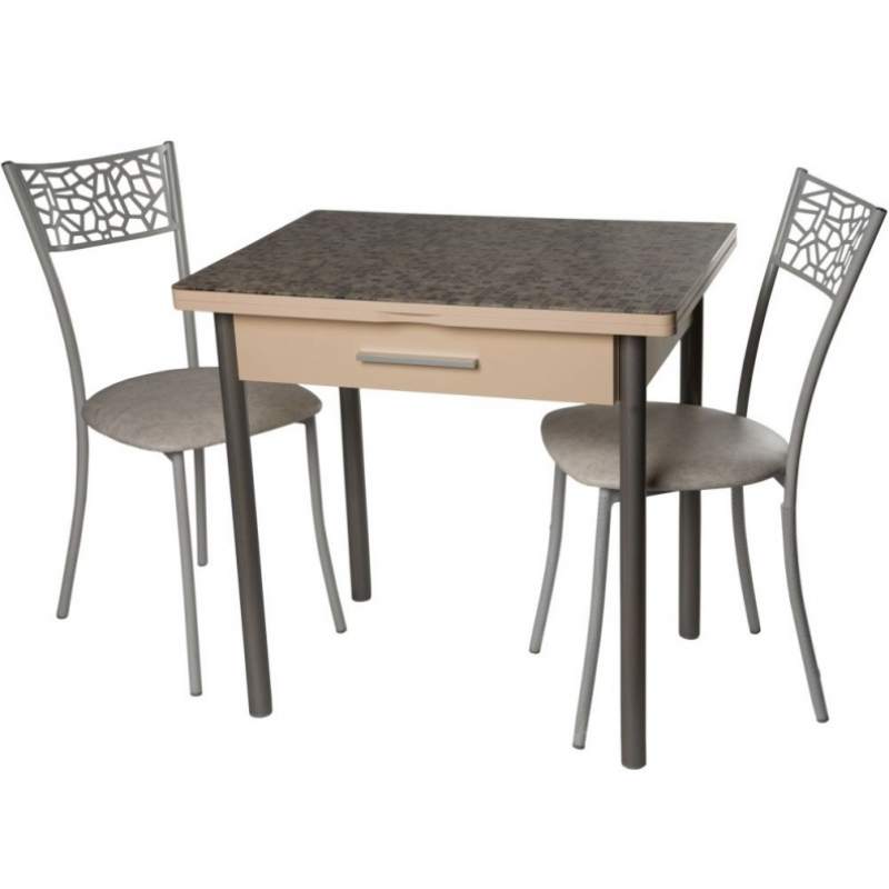Обеденная группа (Стол Милагро и 2 стула Кемпер), белый мрамор