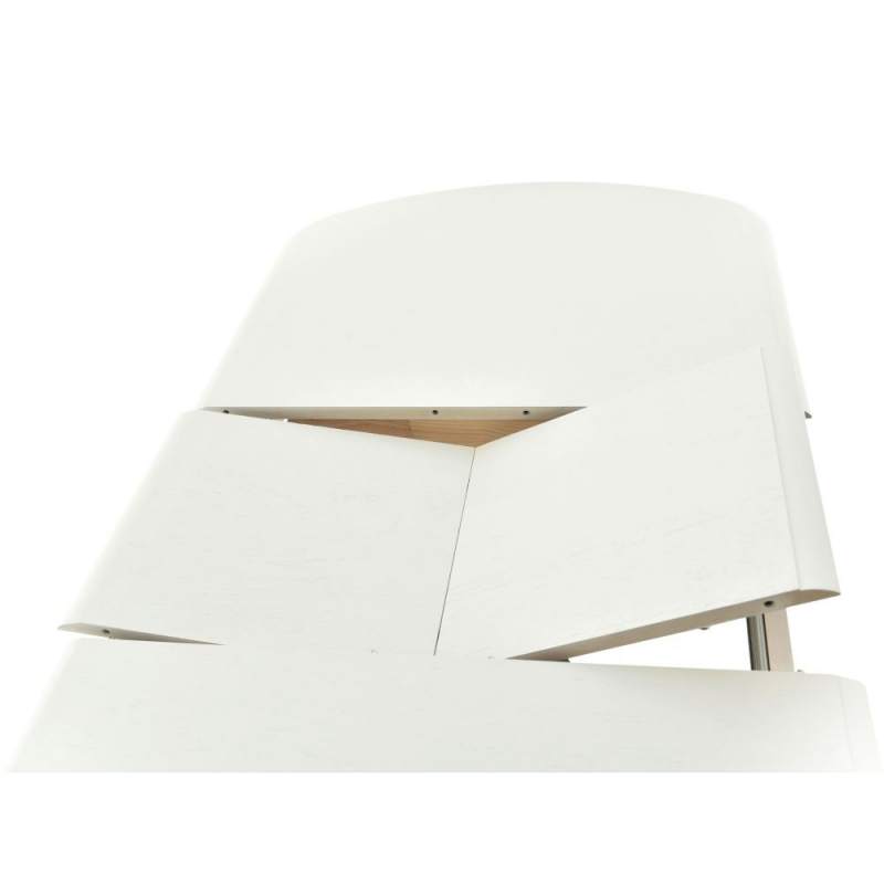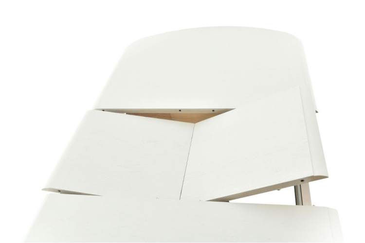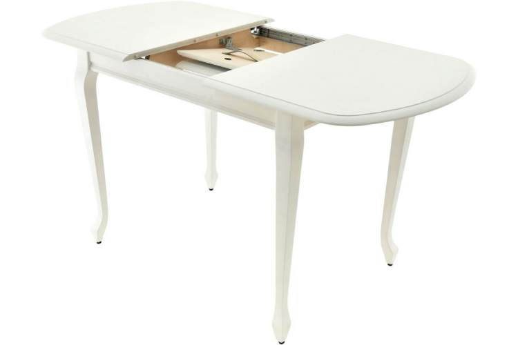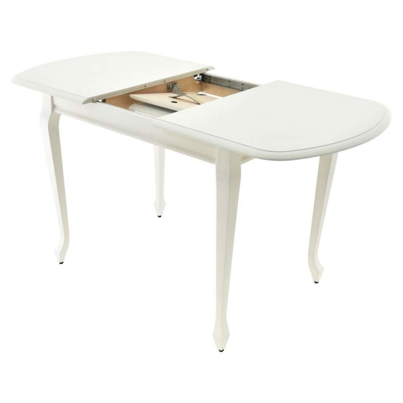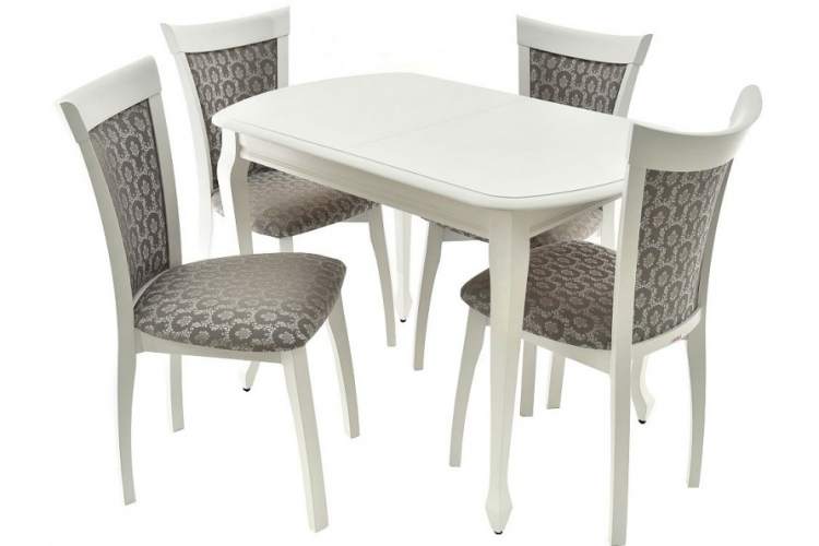 Обеденная группа, состоящая из стола «Прага» в крашении Тон 9 (Эмаль белая) и 4-х стульев «Тулон» с мягкой спинкой, в обивке Стефани 149/2 — изготовленной Димитровградской мебельной фабрикой «Аврора» из экологически чистой породы древесины — массива березы. Столешница выполнена из МДФ и облицована натуральным шпоном дуба.