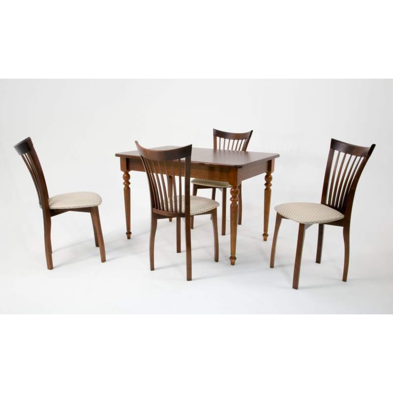 Комплект из деревянного стола Вивальди на каркасе из натурального дерева и 4 стульев Миранда отлично подойдет к интерьеру, выдержанному в классическом или софременном стиле. Данный комплект станет центральным элементом в гостиной, столовой зоне, на кухне, позволив создать уютное обеденное место, где смогут собираться члены дружной семьи и их гости.У модели скругленные углы столешницы. Такое решение исключит риск сколов и обеспечит безопасность, в том числе, детям.Комплект выполнен в красивом цвете - орех. Сочетание изысканного дизайна и высокого качества исполнения - главная особенность комплекта.Столешница выполнена из материалов с великолепными эксплуатационными свойствами - МДФ (Материал создается на основе натуральной древесины. Практичен, надежен, имеет однородную гладкую структуру), шпон.Мебель проста в уходе - для поддержания первозданного вида достаточно использовать простую чуть влажную салфетку по мере необходимости.
