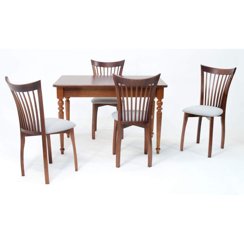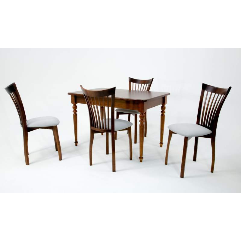 Комплект из деревянного стола Вивальди на каркасе из натурального дерева и 4 стульев Миранда отлично подойдет к интерьеру, выдержанному в классическом или софременном стиле. Данный комплект станет центральным элементом в гостиной, столовой зоне, на кухне, позволив создать уютное обеденное место, где смогут собираться члены дружной семьи и их гости.У модели скругленные углы столешницы. Такое решение исключит риск сколов и обеспечит безопасность, в том числе, детям.Комплект выполнен в красивом цвете - орех. Сочетание изысканного дизайна и высокого качества исполнения - главная особенность комплекта.Столешница выполнена из материалов с великолепными эксплуатационными свойствами - МДФ (Материал создается на основе натуральной древесины. Практичен, надежен, имеет однородную гладкую структуру), шпон.Мебель проста в уходе - для поддержания первозданного вида достаточно использовать простую чуть влажную салфетку по мере необходимости.