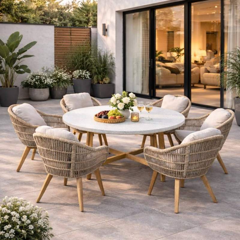 Превратите трапезу на свежем воздухе в изысканное событие с уникальным комплектом ELEONORA, который сочетает в себе стиль, уют и удобную комплектацию.