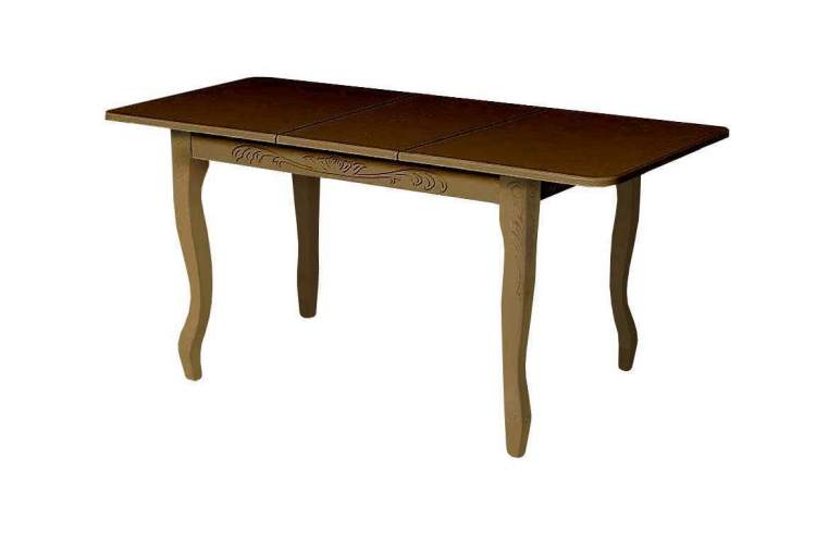 Особый внешний вид столу придают изящные гнутые резные опоры и отделка подстолья.