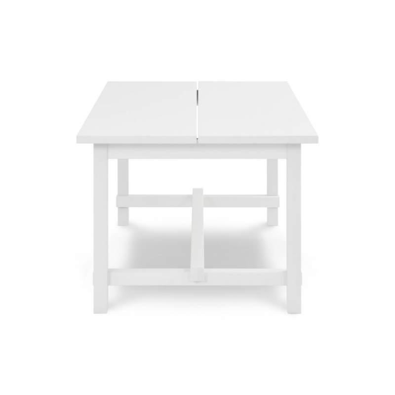 Стол изготовлен из натурального массива сосны. Покрытие выполнено с использованием красителей на водной основе и лака на основе акриловых смол с УФ-отверждением. Такое покрытие обеспечивает долговечность изделия, устойчивость к потертостям и царапинам, а также простоту в уходе — достаточно легкой влажной уборки.
